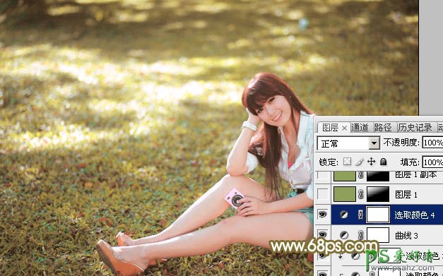 Photoshop给性感的美腿少女户外写真照调出柔美黄色调效果