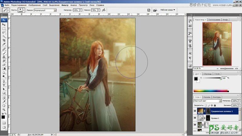 心得:我个人觉得这一步最关键也最有趣,以前不太明白俄罗斯摄影师作品里,背景里的色彩如何变成这种又黄又暖又梦幻的感觉,虽然“可选颜色+蒙版”之类的工具可以变化背景颜色,但是这种直接刷一层色彩上去再局部涂抹的方式,更加梦幻,更加浓郁。