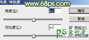 12、创建亮度/对比度调整图层,适当增加亮度及对比度,参数及效果如下图。