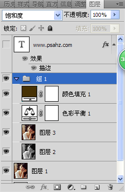 5、将除图层1外的图层,全选,ctrl+g编组,文件夹的图层模式改为“饱和度”操作完成。