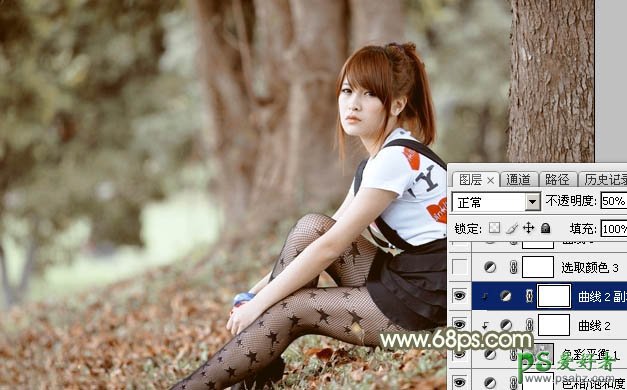 8、按Ctrl + J 把当前曲线调整图层复制一层,不透明度改为:50%,同样按Ctrl + Alt + G 创建剪切蒙版,效果如下图。