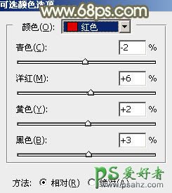 9、创建可选颜色调整图层,对红、黄,白进行调整,参数设置如图26 - 28,效果如图29。这一步微调图片中的暖色及高光颜色。