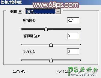 ,创建色相/饱和度调整图层,对黄色,绿色进行调整,参数设置如图1,2,效果如图3。这一步把图片中的黄绿色转为红褐色。