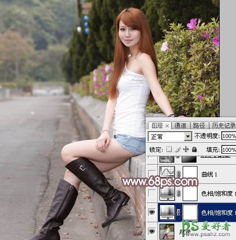Photoshop调色实例教程学习:给黑丝袜树林风景中的MM调出淡...