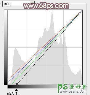 3、创建曲线调整图层,对RGB、红、绿、蓝通道的暗部进行调整,参数及效果如下图。这一步把图片暗部颜色加深,并增加红褐色。