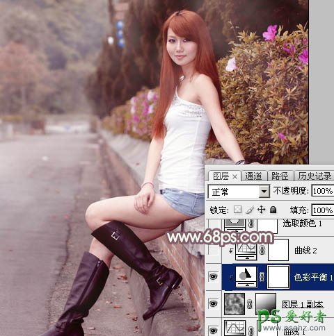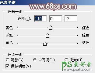 5、创建色彩平衡调整图层,对阴影、中间调,高光进行调整,参数设置如图8 - 10,确定后按Ctrl + Alt + G 创建剪切蒙版,效果如图11。这一步给图片增加红褐色。