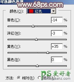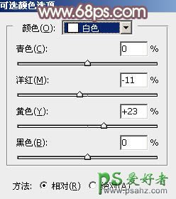 7、创建可选颜色调整图层,对红、黄、白、中性,黑进行调整,参数设置如图14 - 18,效果如图19。这一步给图片增加橙红色。