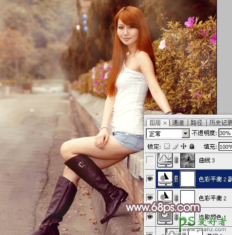 9、按Ctrl + J 把当前色彩平衡调整图层复制一层,不透明度改为:30%,效果如下图。