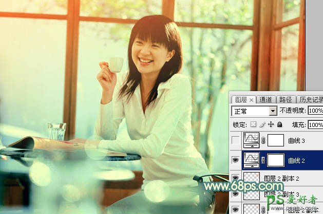 10、创建曲线调整图层,对红,蓝通道进行调整,参数设置如图30,31,效果如图32。这一步给图片高光部分增加淡黄色。
