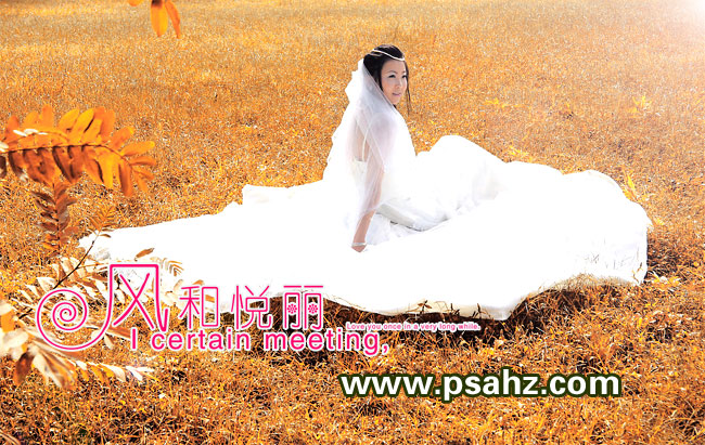 PS唯美婚纱照图片调色教程:给漂亮美女婚片调出个性暖调效果