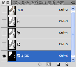 面板,复制蓝色通道,将天空在通道里抠出,其余的填充为黑色。