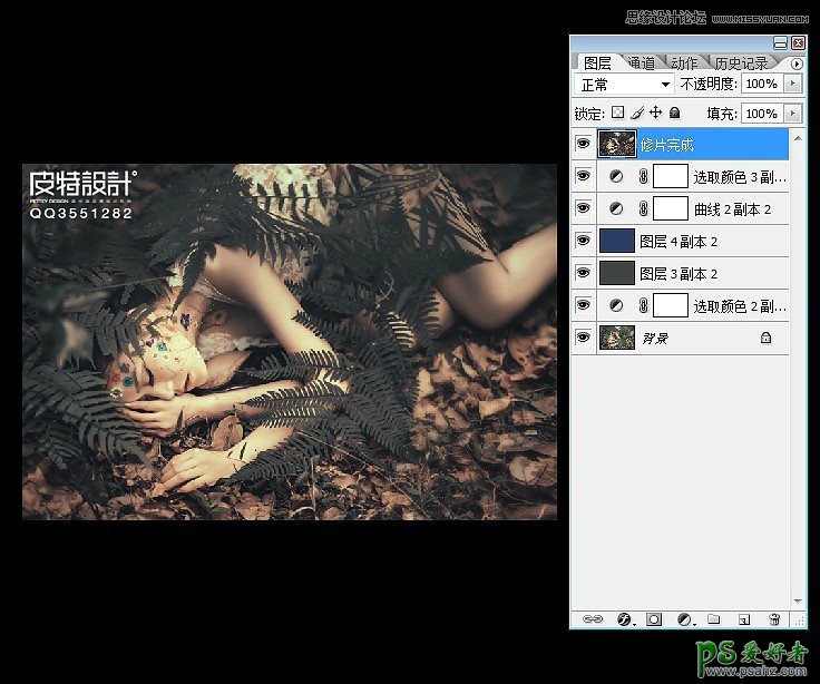 photoshop给森林中自拍的少女唯美写真照调出高端中性色彩