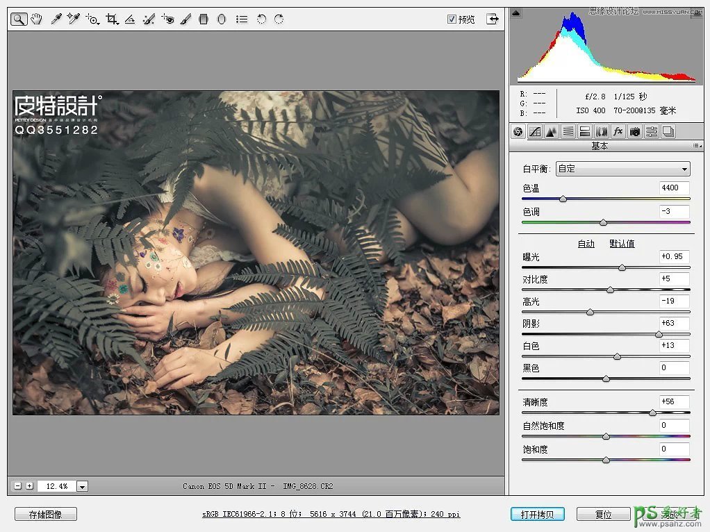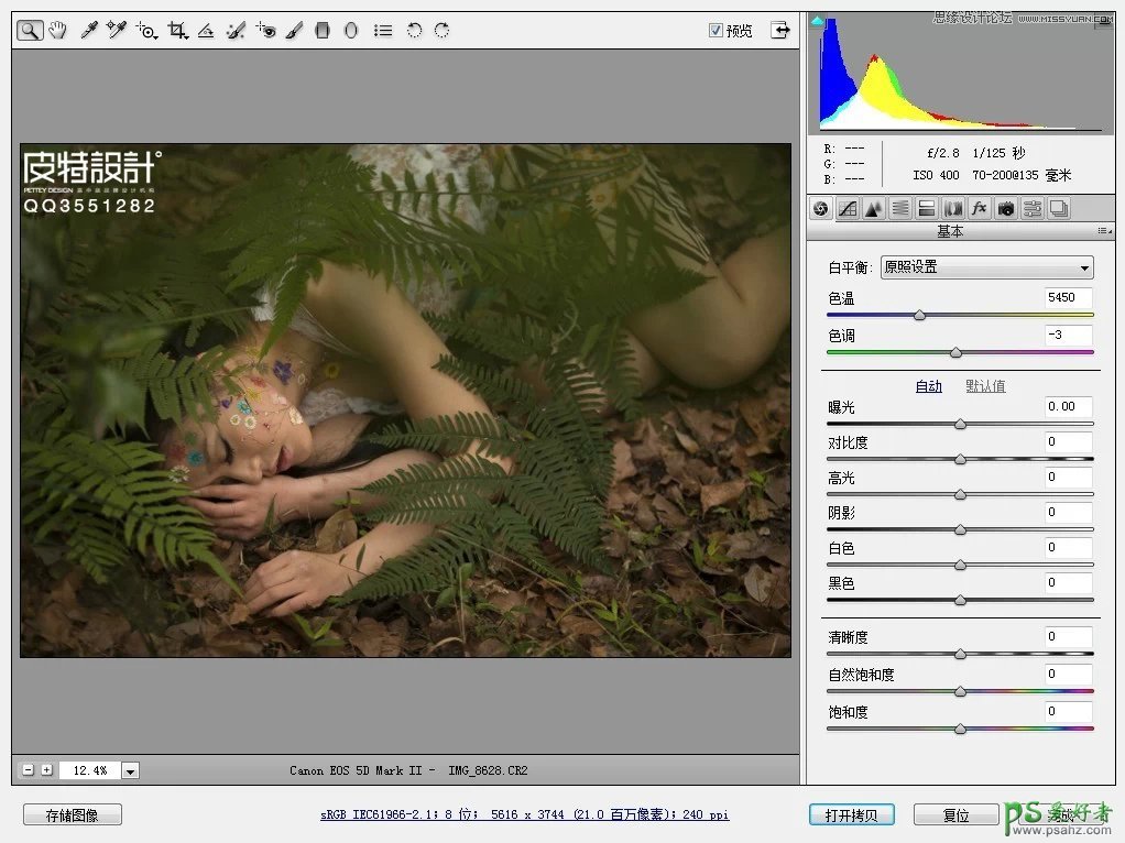 photoshop给森林中自拍的少女唯美写真照调出高端中性色彩