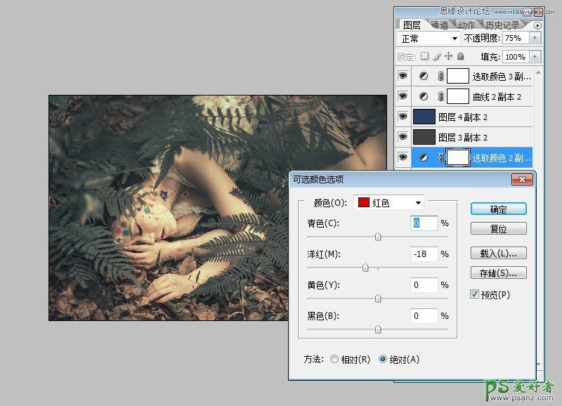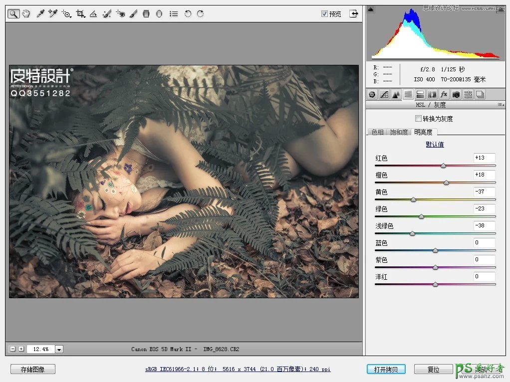 photoshop给森林中自拍的少女唯美写真照调出高端中性色彩