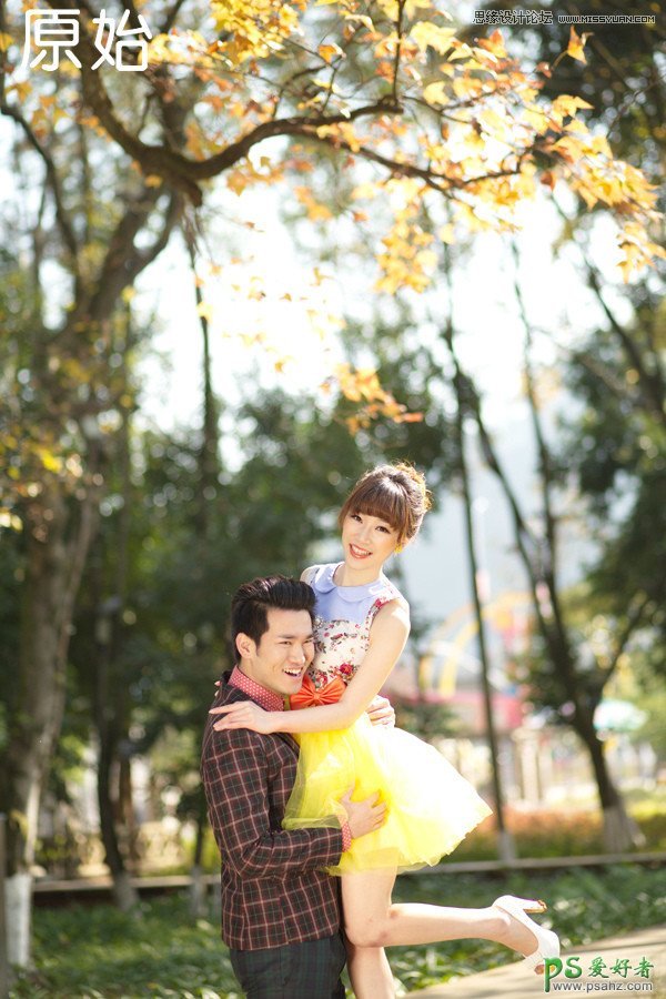 利用PS可选颜色调色命令给外景婚片调出唯美的秋景金黄色彩