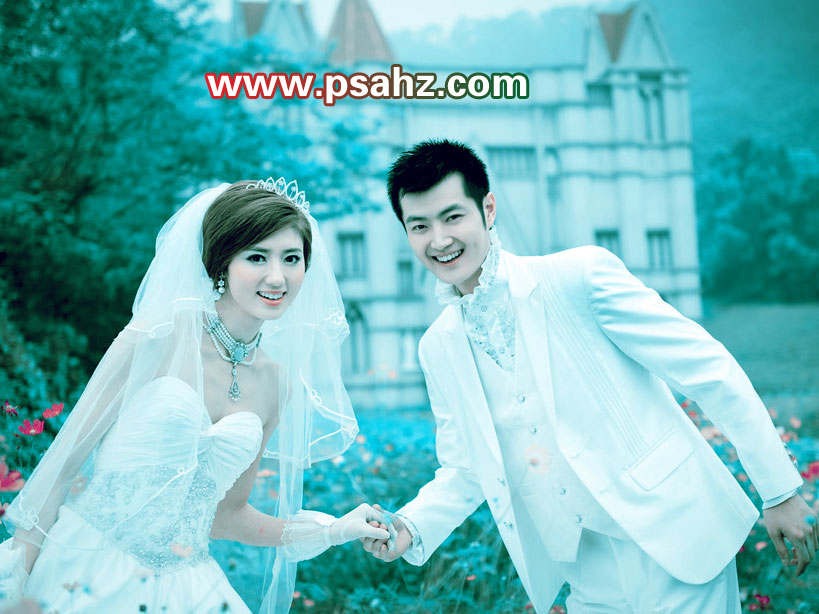photoshop调出青色调的唯美婚纱照效果为炎热的夏季带来一丝清凉