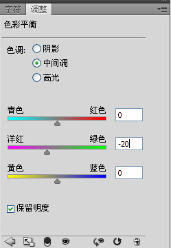 5、转到rgb模式,创建色彩平衡调整图层,设置如图: