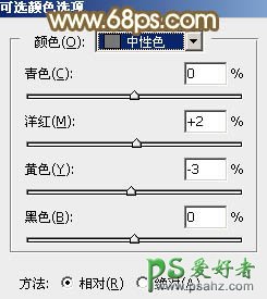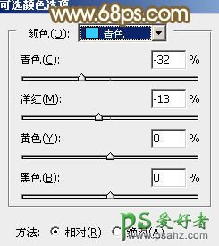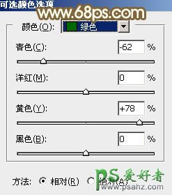 7、创建可选颜色调整图层,对黄、绿、青,中性色进行调整,参数设置如图16 - 19,效果如图20。这一步适当减少图片中的橙黄色。