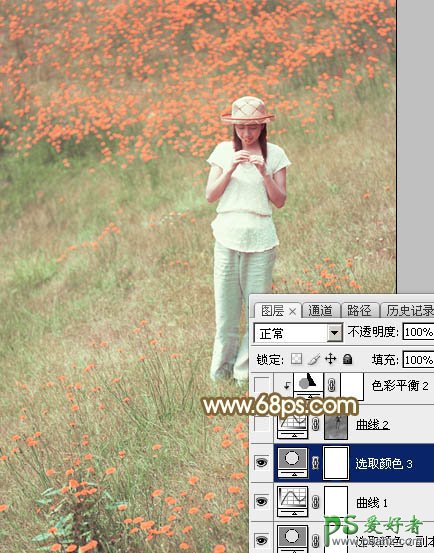 Photoshop给花草甸中的未成年少女写真照调出甜美的韩系粉红色