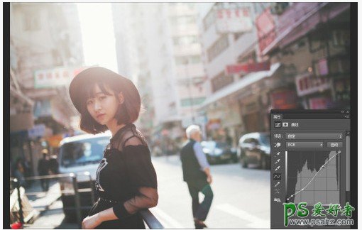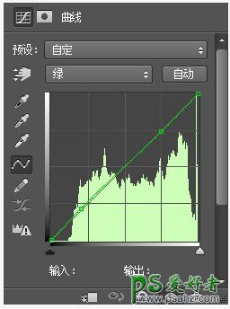 2、再调微调绿色曲线,因为是人像所以要照顾到肤色,作了整体偏青的处理后,在绿色曲线里稍微拉起暗部,使肤色多了点洋红。