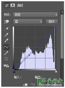 3、然后调整蓝色曲线,蓝色曲线暗部直接拉低,使暗部偏黄,亮部和中间调适当恢复蓝色。