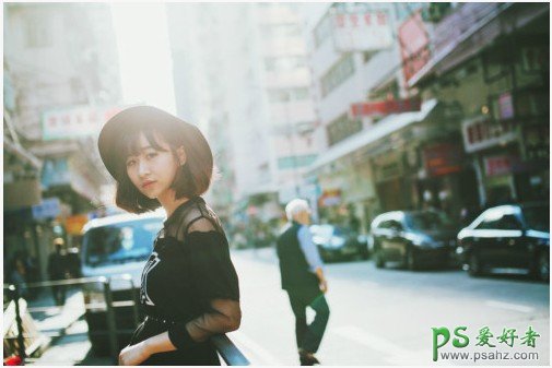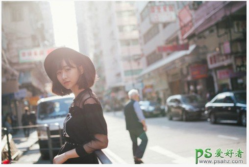 PS日系风格美女图调色:给穿日系女装街景美女照调出唯美淡青色