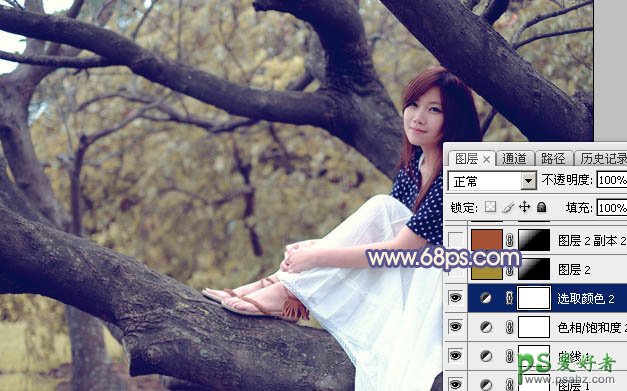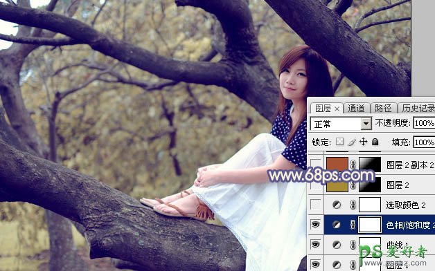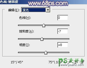 5、创建色相/饱和度调整图层,对黄色进行调整,参数及效果如下图。这一步把图片中的黄色调淡一点。