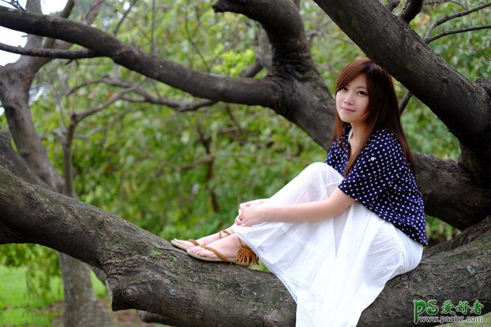 PS日系风格美女图调色:给穿日系女装街景美女照调出唯美淡青...