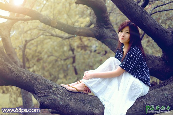 ,PS调色教程:给可爱的小妹妹外拍写真图片调出秋季晨曦效果,让人看上去唯美,清纯漂亮。