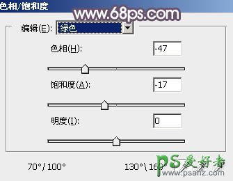 2、创建色相/饱和度调整图层,对全图、黄、绿,青色进行调整,参数设置如图5 - 8,效果如图9。这一步同样减少图片中的黄绿色。