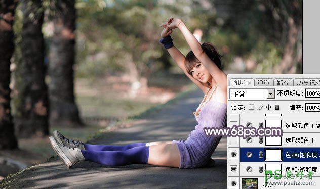PS韩国美女图片后期调色美化教程:给漂亮韩国美女调出黄绿阳...