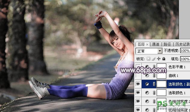 PS韩国美女图片后期调色美化教程:给漂亮韩国美女调出黄绿阳...