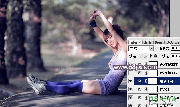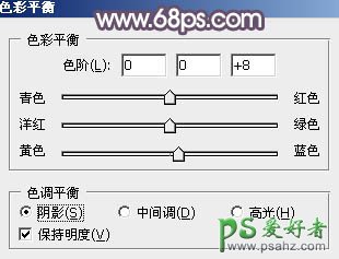 6、创建色彩平衡调整图层,对阴影,高光进行调整,参数设置如图17,18,效果如图19。这一步给图片暗部及高光部分增加蓝色。