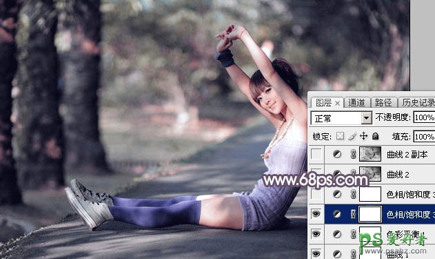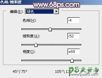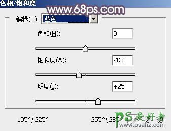 7、创建色相/饱和度调整图层,对绿色,蓝色进行调整,参数设置如图20 - 21,效果如图22。这一步主要把图片中的蓝色调淡一点。