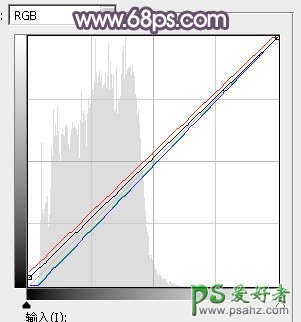 9、按Ctrl + Alt + 2 调出高光选区,按Ctrl + Shift + I 反选,然后创建曲线调整图层,对RGB、红、绿、蓝通道进行调整,参数及效果如下图。这一步稍微增加暗部亮度,并给暗部增加红色。