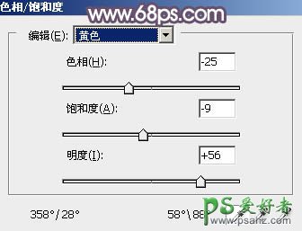 11、创建色相/饱和度调整图层,对全图、红色,黄色进行调整,参数及效果如下图。这一步减少图片中的黄色。