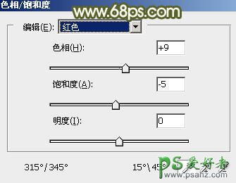 5、创建色相/饱和度调整图层,对红、黄、绿,青进行调整,参数设置如图8 - 11,效果如图12。这一步适当降低图片中的暖色及绿色饱和度,把图片主色调柔和。
