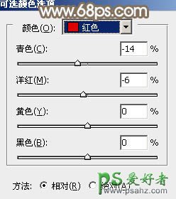 12、创建可选颜色调整图层,对红色进行调整,参数及效果如下图。这一步给图片增加淡红色。