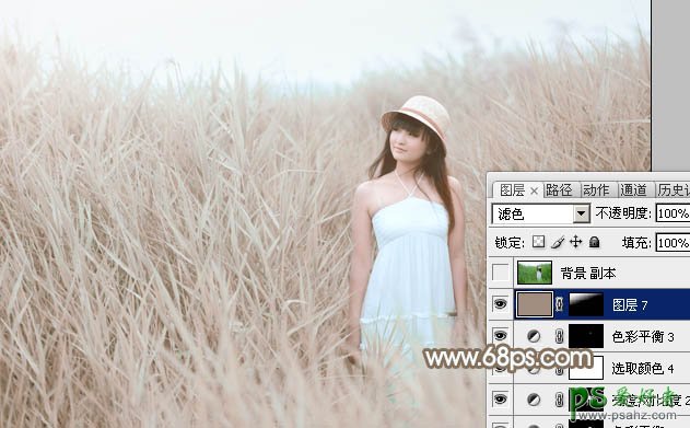 13、新建一个图层,填充黄褐色:#A08C81,混合模式改为“滤色”,按住Alt键添加图层蒙版,用白色画笔把左上角部分擦出来,效果如下图。