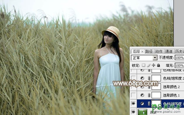 ps古典图片调色教程:给田野中的美女调出柔和的古典图片色彩