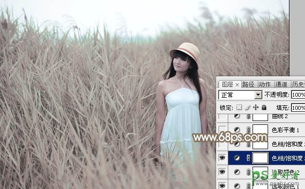 4、创建色相/饱和度调整图层,对全图进行调整,参数及效果如下图。这一步给图片增加中性色。