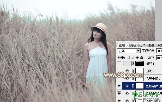 5、按Ctrl + J 把当前色相/饱和度调整图层复制一层,不透明度改为:50%,效果如下图。