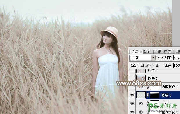 8、按Ctrl + Alt + 2 调出高光选区,新建一个图层填充淡绿色:#D8E2DC,不透明度改为:60%。取消选区后按Alt键添加图层蒙版,用白色画笔把天空部分擦出来,效果如下图。