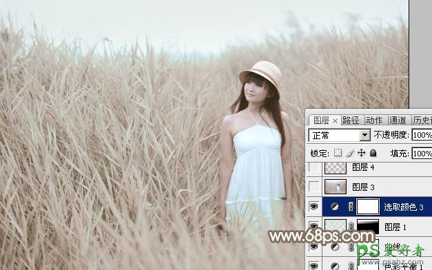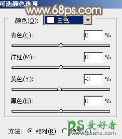 9、创建可选颜色调整图层,对红、黄、白进行调整,参数设置如图21 - 23,效果如图24。这一步微调人物肤色及高光颜色。