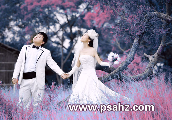 PS影楼婚纱照调色实例:设计师教您简单三步调出深秋色外景婚纱照