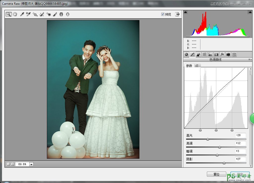 Camera Raw里的调整如下: