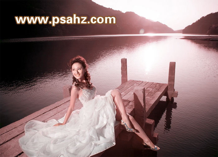 PS婚片后期调色教程:给外景浪漫的海景婚纱照调出时尚蓝色风...