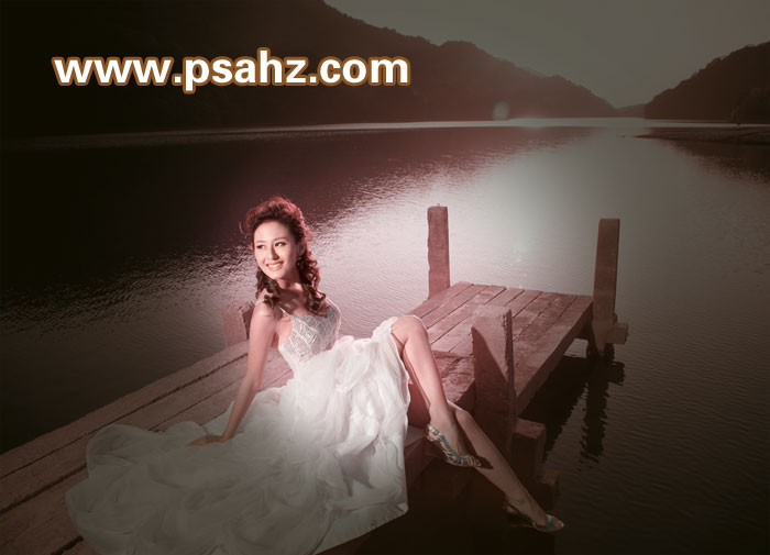 PS婚片调色教程:简单几步将黄色调的婚片调成偏紫的暗夜效果