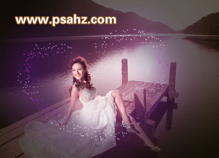 :简单几步将黄色调的婚片调成偏紫的暗夜效果,看上去非常浪漫,梦幻,太美了,本文重点,掌握调整图层的使用,和画笔的设置