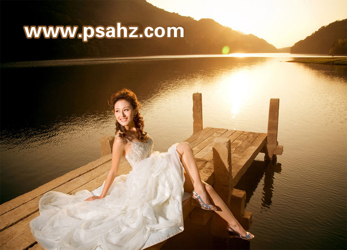 PS婚片后期调色教程:给外景浪漫的海景婚纱照调出时尚蓝色风...
